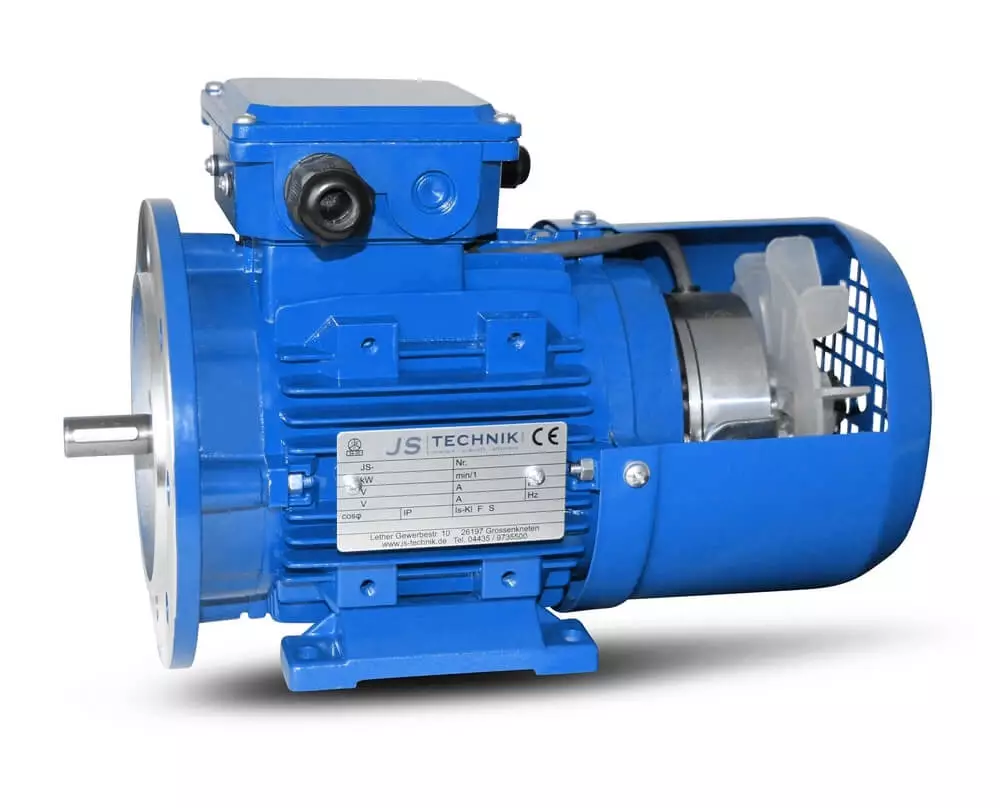 Pružinová brzda brzdí elektromotor při vypnutí napětí. Při provozu s měničem je brzda