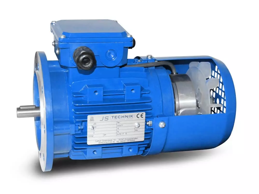 Pružinová brzda brzdí elektromotor při vypnutí napětí. Při provozu s měničem je brzda