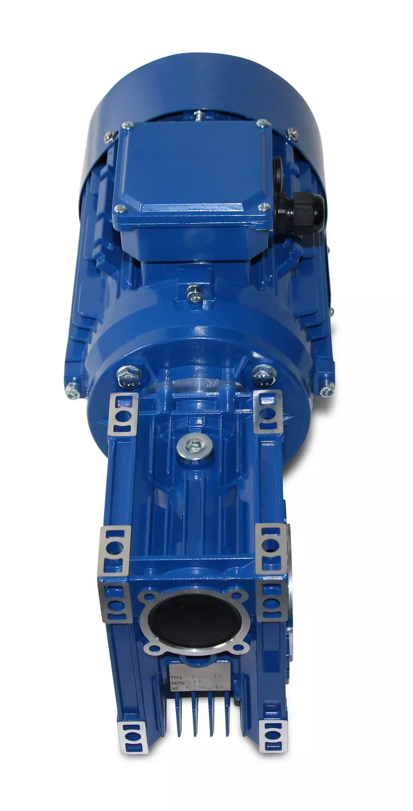 Motor se šnekovou převodovkou, výkon=1,1 kW, otáčky=140 ot/min, se speciální dutou hřídelí,